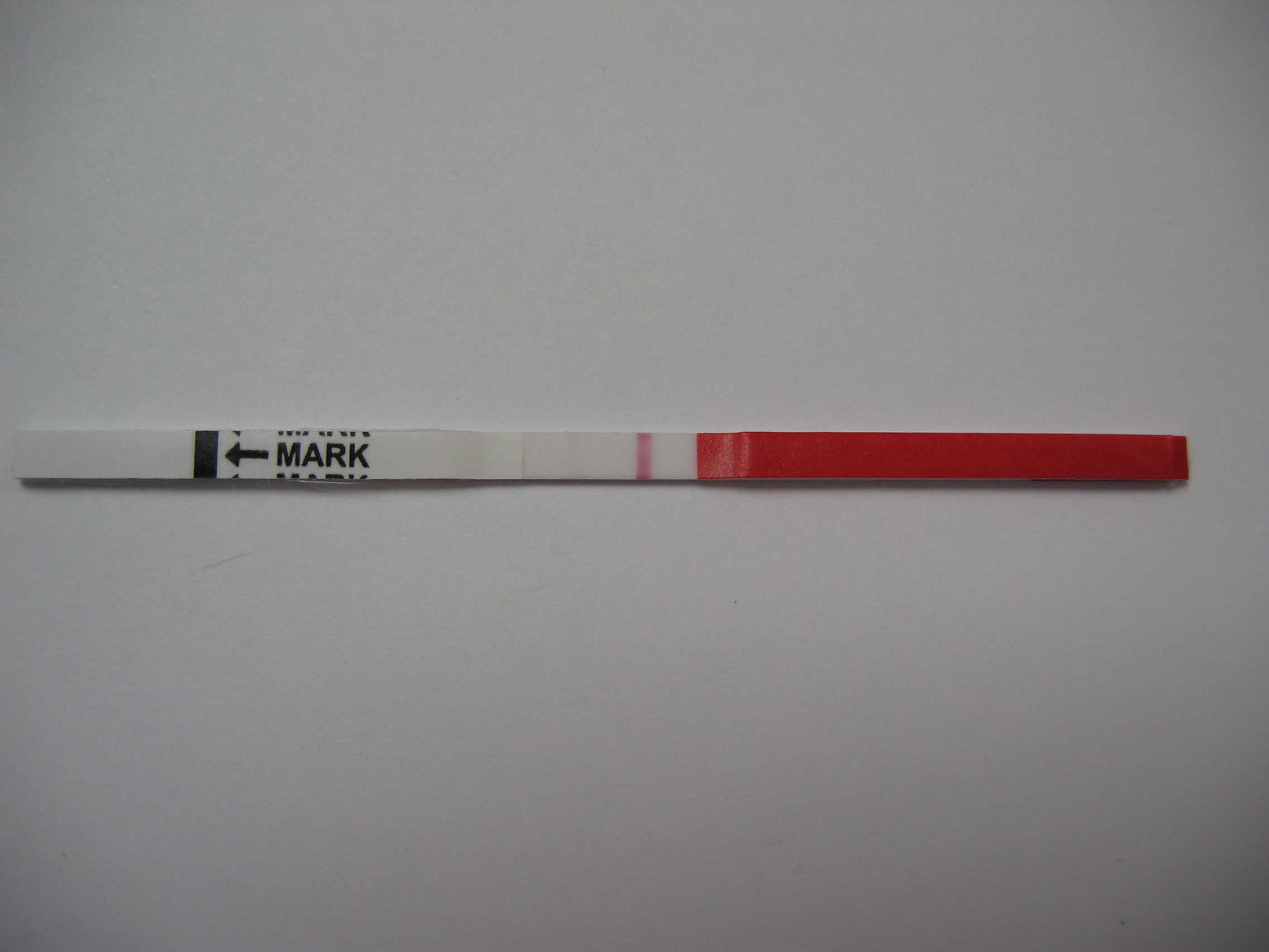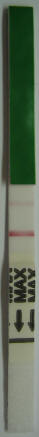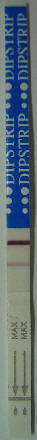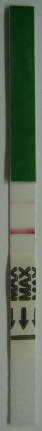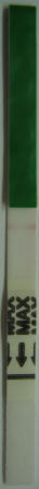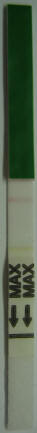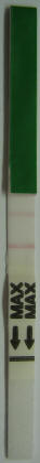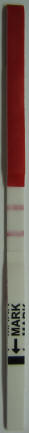 In order to determine whether a woman's menstrual period affects the ability to detect PSA, the absorptive pads of a volunteer on her menstrual period were analyzed at various intervals after intercourse. The pads were analyzed using PSA strips. The results are shown in Fig. 9-10. PSA was detectable up to 36 h after intercourse, which was approximately the same result obtained by analyzing undergarments while not on a menstrual period. These results indicate that a woman's menstrual period does not interfere with the ability to detect PSA by immunochromatographic strips.